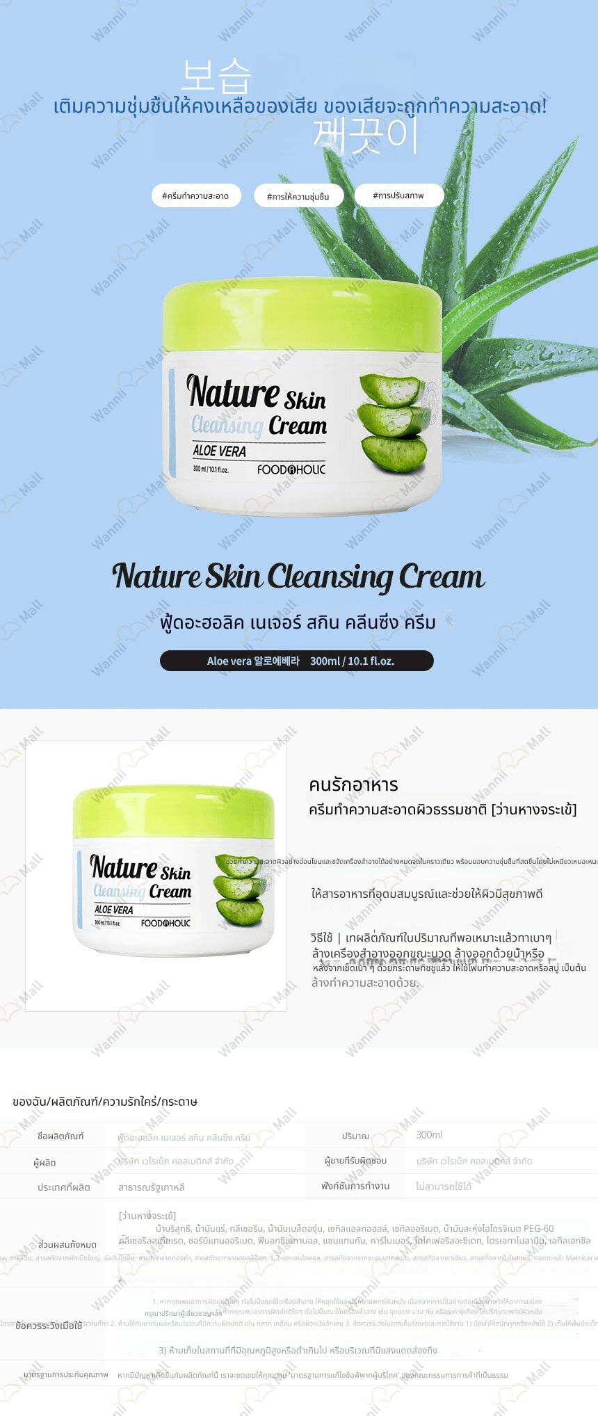 - โฮม > ความงาม/เครื่องสำอาง > คลีนซิ่ง/สครับ/พิลลิ่ง > คลีนซิ่ง > Foodaholic Nature Skin Cleansing Cream 300มล. / ว่านหางจระเข้