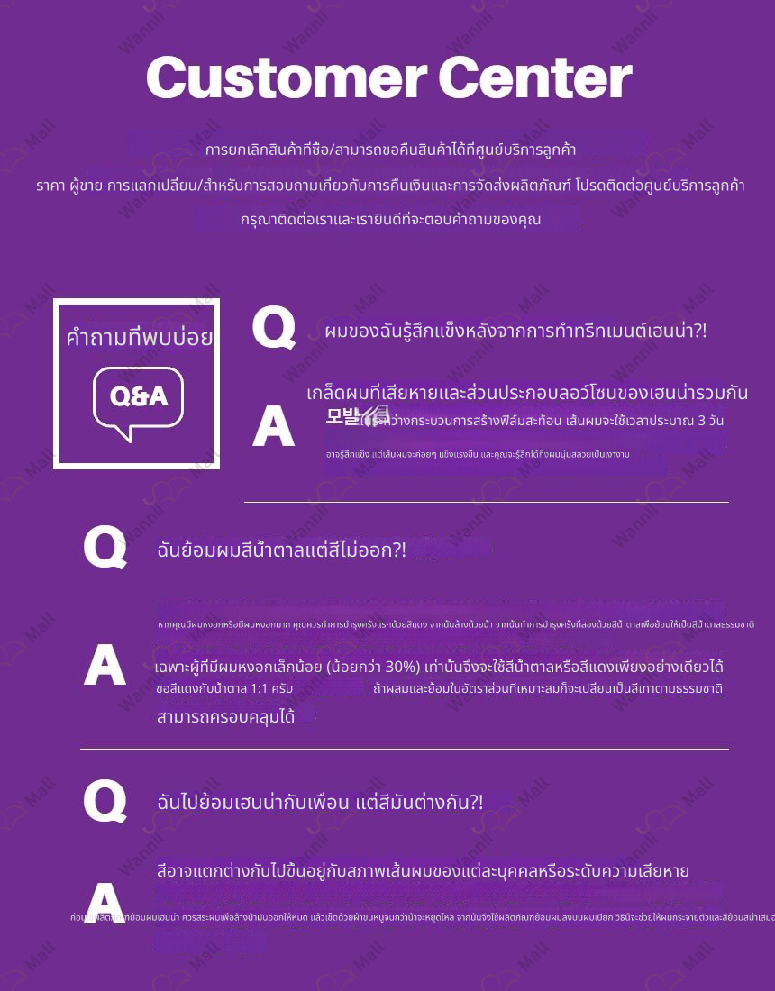 • หากคุณต้องการเปลี่ยนหรือคืนสินค้า กรุณายื่นคำขอภายใน 7 วัน หลังจากได้รับสินค้า โดยติดต่อศูนย์บริการลูกค้า Wannii Mall (together1@wannii.com หรือ 070-4256-8800)
