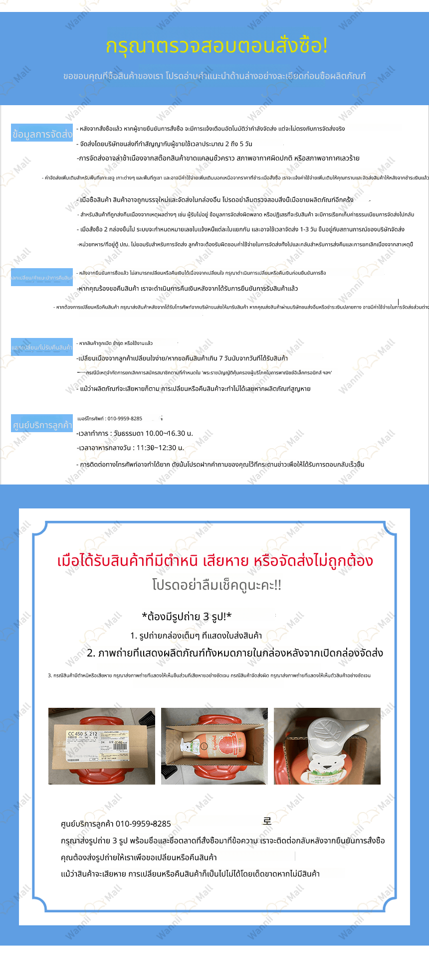 • หากคุณต้องการเปลี่ยนหรือคืนสินค้า กรุณายื่นคำขอภายใน 7 วัน หลังจากได้รับสินค้า โดยติดต่อศูนย์บริการลูกค้า Wannii Mall (together1@wannii.com หรือ 070-4256-8800)