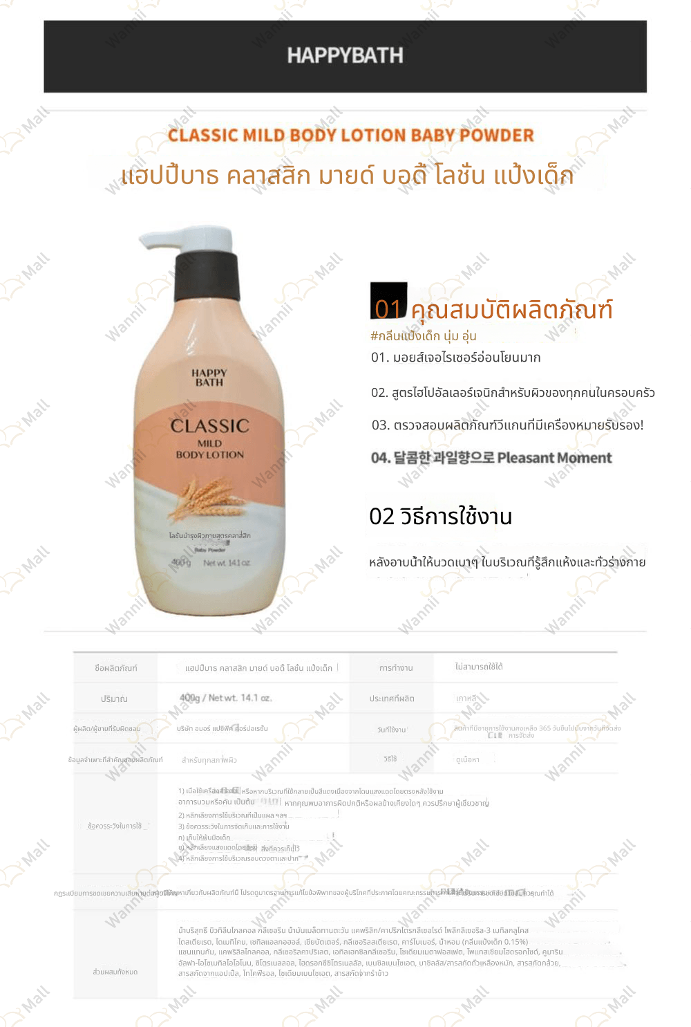 • หากคุณต้องการเปลี่ยนหรือคืนสินค้า กรุณายื่นคำขอภายใน 7 วัน หลังจากได้รับสินค้า โดยติดต่อศูนย์บริการลูกค้า Wannii Mall (together1@wannii.com หรือ 070-4256-8800)