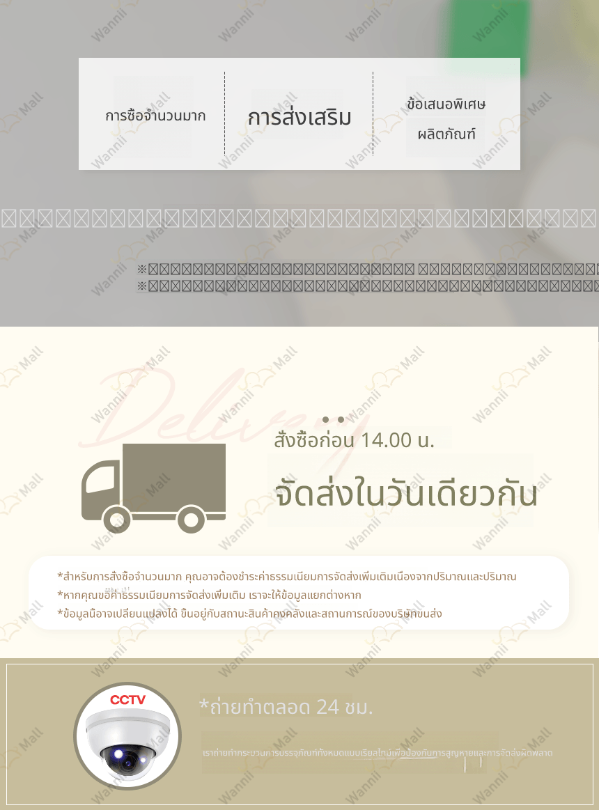 • กรณีที่สินค้ามีตำหนิ หรือจัดส่งผิดพลาด ทาง Wannii Mall จะเป็นผู้รับผิดชอบค่าจัดส่ง
