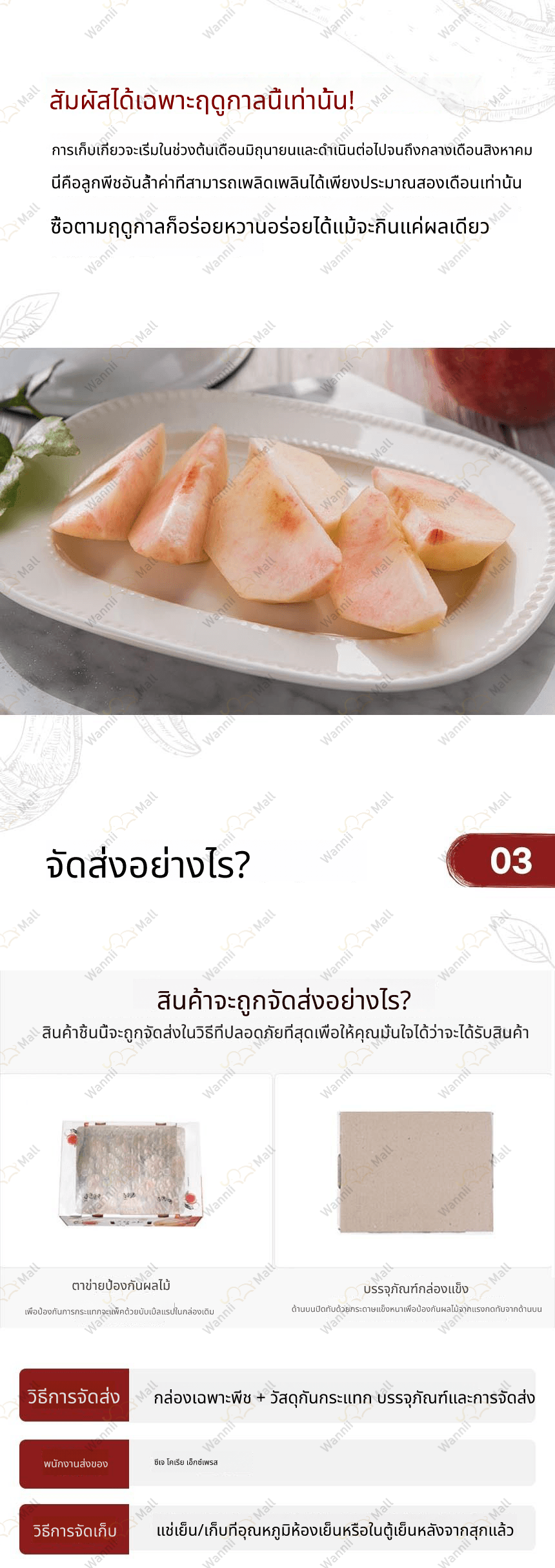 - โฮม > อาหาร > อาหารสด > ผัก/ผลไม้ > ลูกพีชขนจากคยองบุก (ขาว/เหลือง) แบบแข็ง คละ ขนาดใหญ่ 4kg (13-14 ลูก)