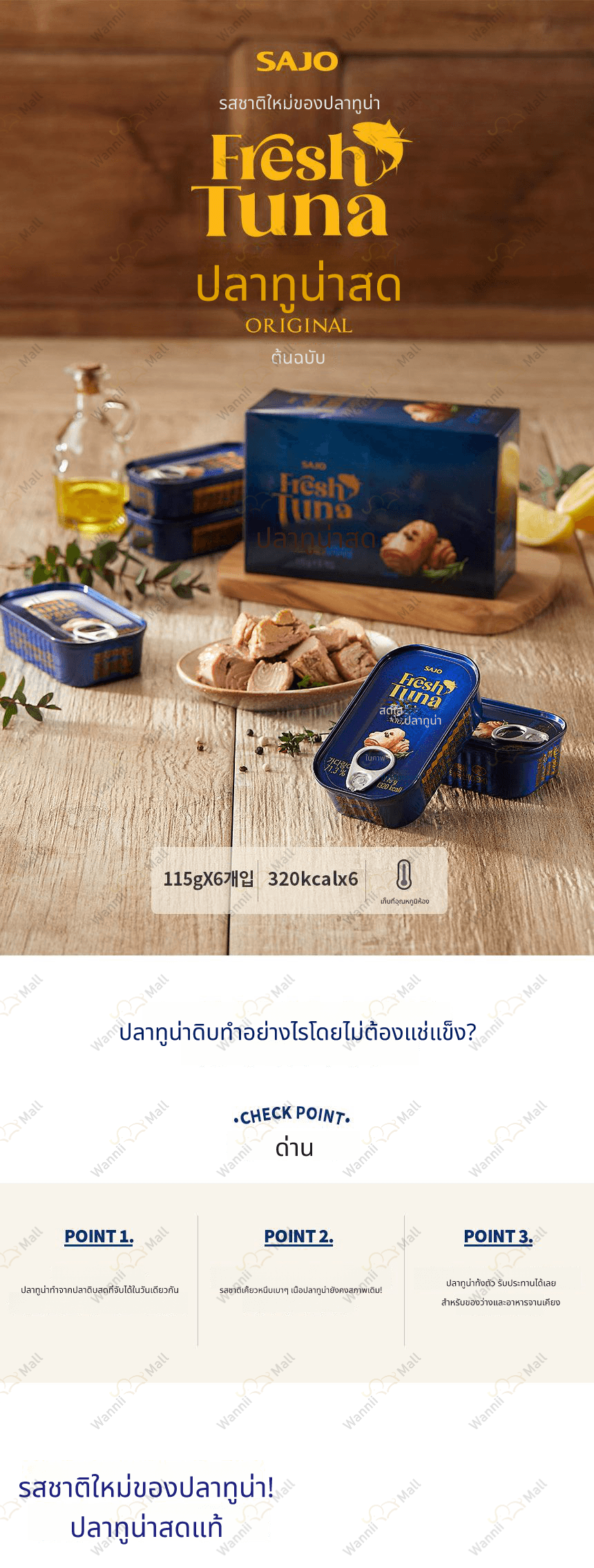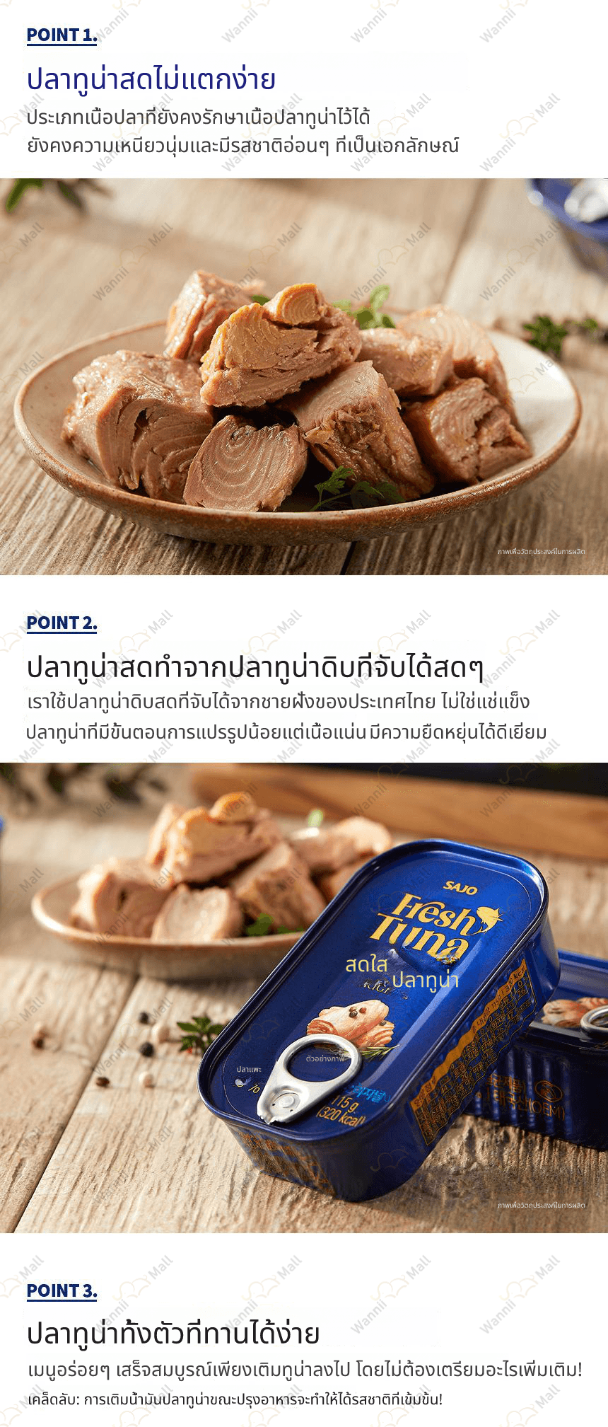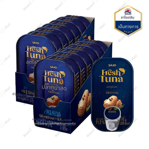- โฮม > อาหาร > อาหารสำเร็จรูป > อาหารกระป๋อง > ปลาทูน่าสดซาโจ้ ออริจินัล 115ก. 12 กระป๋อง