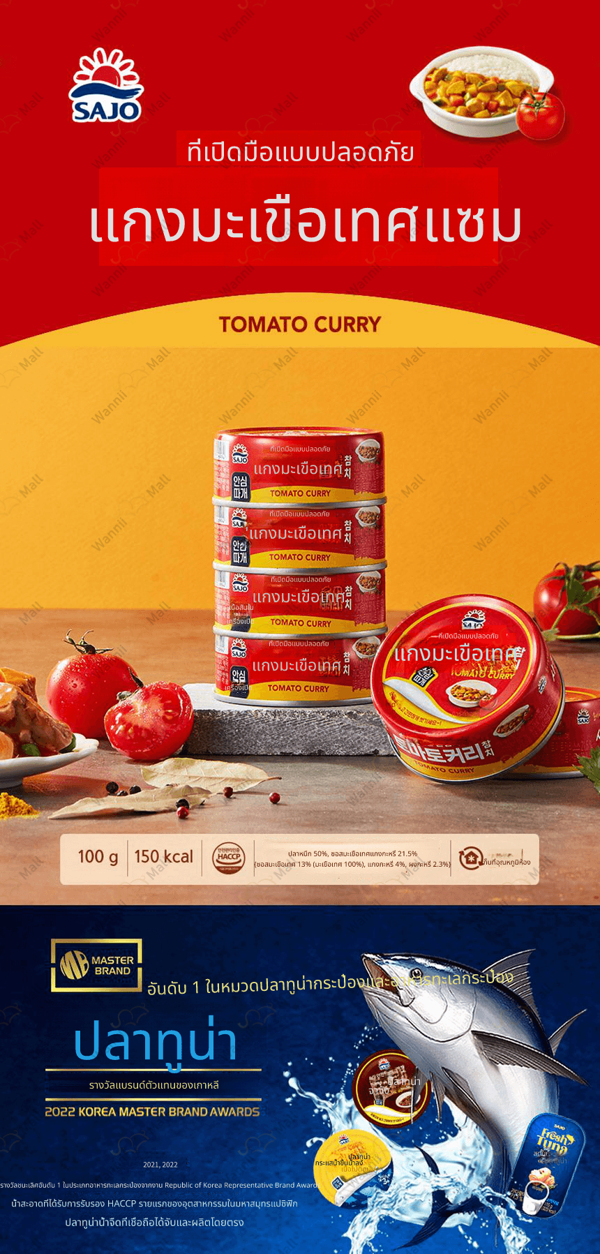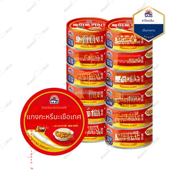 - โฮม > อาหาร > อาหารสำเร็จรูป > อาหารกระป๋อง > ปลาทูน่าแกงกะหรี่มะเขือเทศซาโจ้ แบบเปิดง่าย 100ก. 12 กระป๋อง