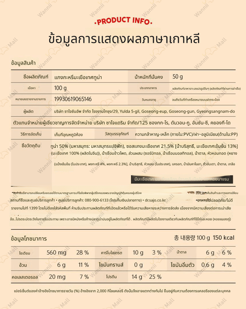 • หากคุณต้องการเปลี่ยนหรือคืนสินค้า กรุณายื่นคำขอภายใน 7 วัน หลังจากได้รับสินค้า โดยติดต่อศูนย์บริการลูกค้า Wannii Mall (together1@wannii.com หรือ 070-4256-8800)