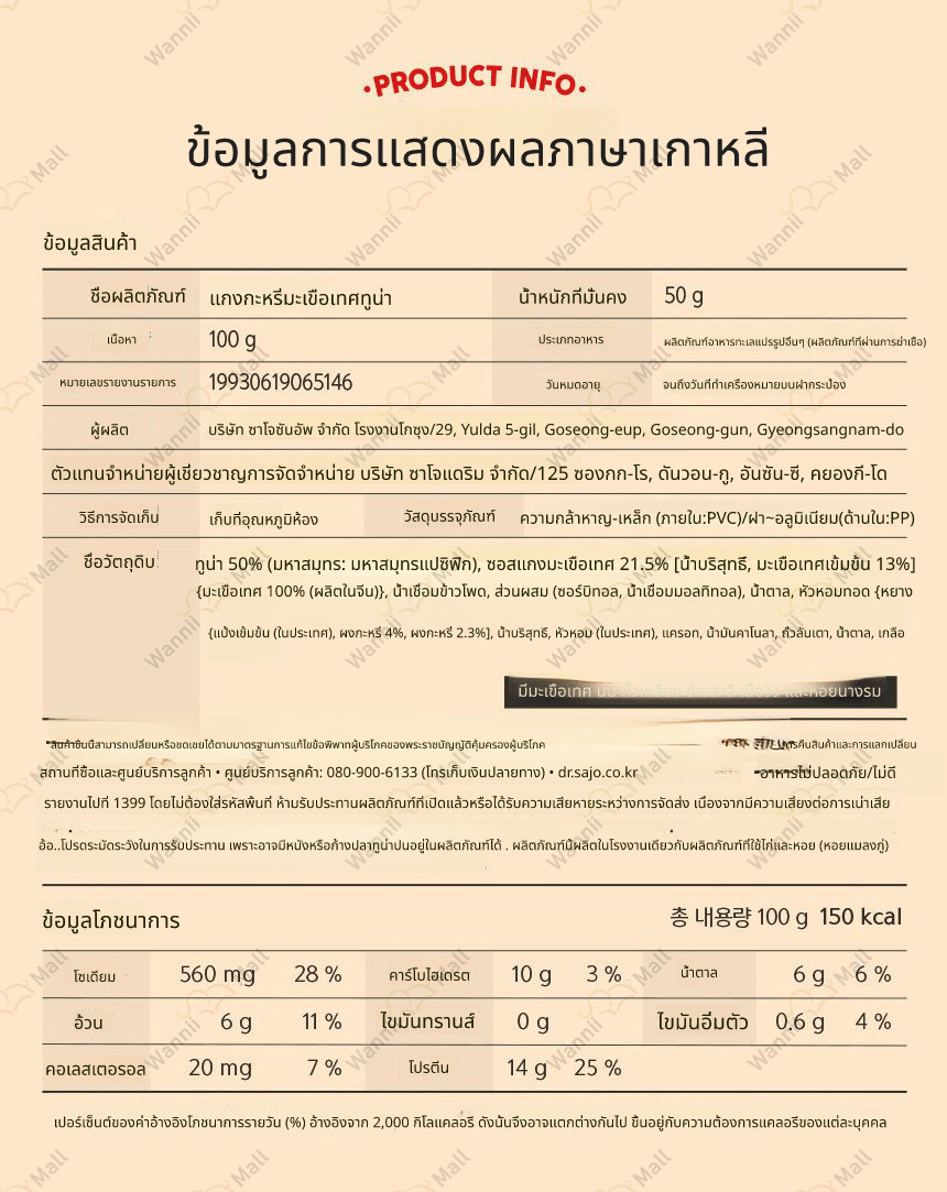 • หากคุณต้องการเปลี่ยนหรือคืนสินค้า กรุณายื่นคำขอภายใน 7 วัน หลังจากได้รับสินค้า โดยติดต่อศูนย์บริการลูกค้า Wannii Mall (together1@wannii.com หรือ 070-4256-8800)