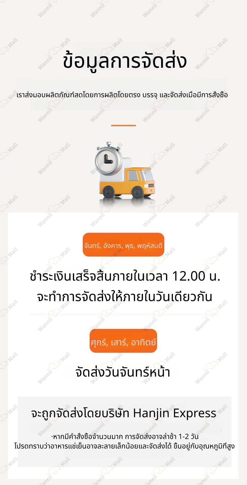 • กรณีที่สินค้ามีตำหนิ หรือจัดส่งผิดพลาด ทาง Wannii Mall จะเป็นผู้รับผิดชอบค่าจัดส่ง