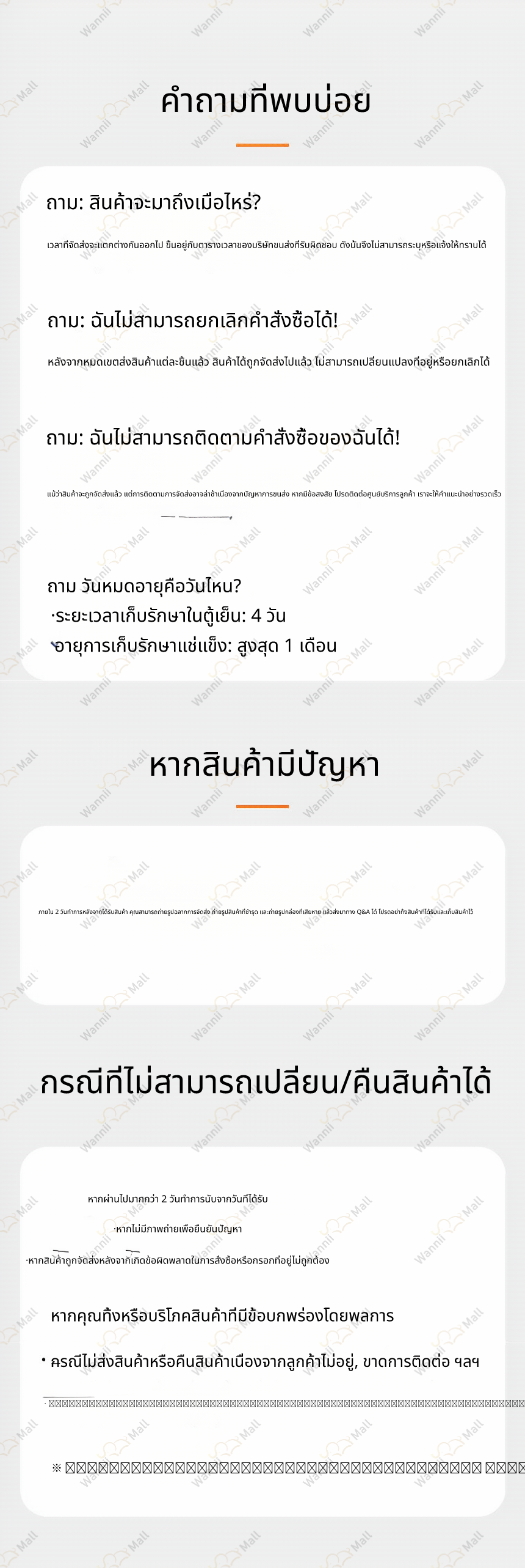 • สินค้าที่ถูกส่งคืนโดยไม่มีการแจ้งล่วงหน้า เราจะไม่รับผิดชอบ
