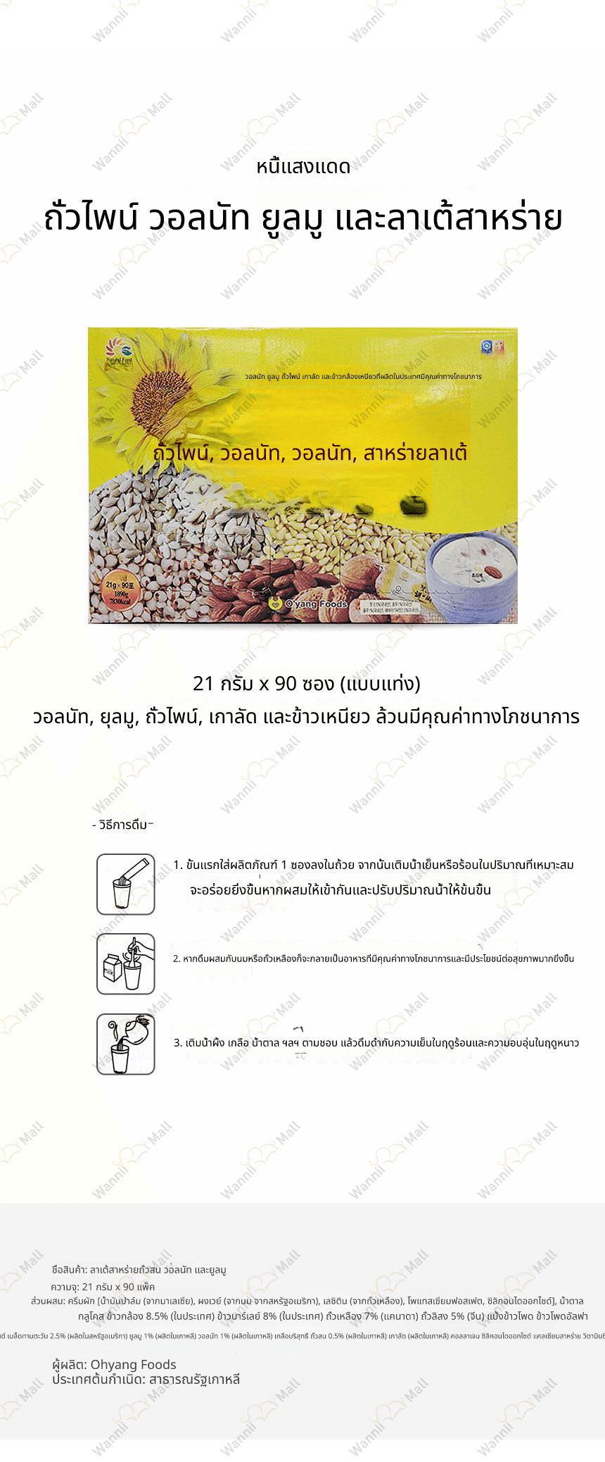 - โฮม > อาหาร > เครื่องดื่ม > กาแฟ/ชา > เครื่องดื่มเพื่อสุขภาพสำหรับมื้อเช้า ถั่วสน วอลนัท Yulmu ชาเพื่อสุขภาพ 90 ซอง ผงธัญพืชสำหรับมื้อกลางวันและเย็น ถั่วดำ