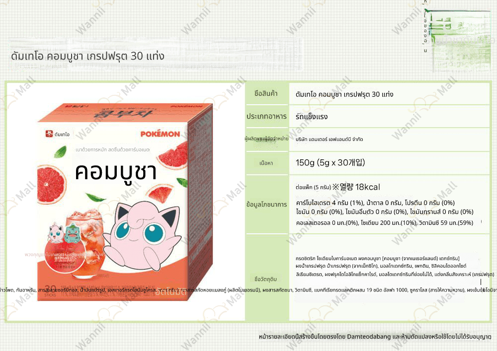- โฮม > อาหาร > เครื่องดื่ม > กาแฟ/ชา > (ส่งฟรี) Damteo Kombucha Grapefruit 30 ซอง ดื่มแล้วสดชื่น อิ่มท้อง