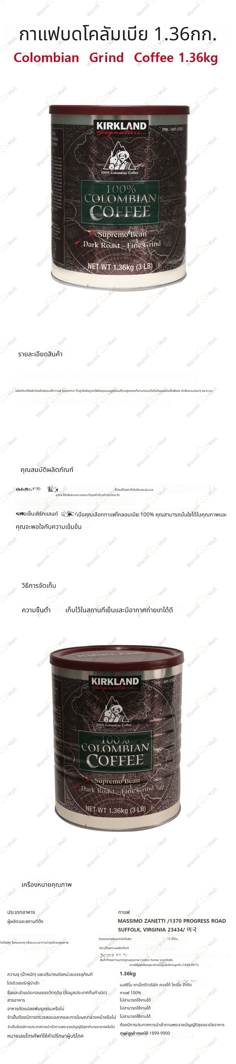 Kirkland Colombia 1.36kg กาแฟบด สินค้ายอดนิยม แนะนำสำหรับช้อปปิ้ง