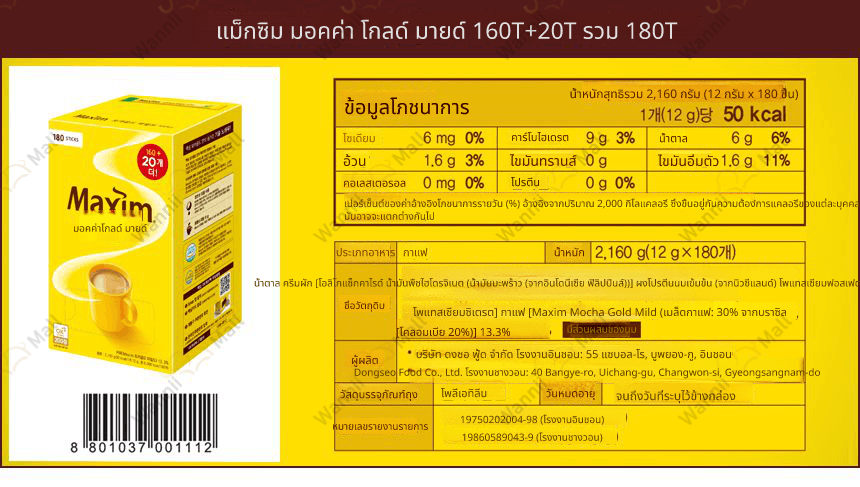 Maxim Mocha Gold Coffee Mix 12g x 180 ซอง Dongsuh Foods