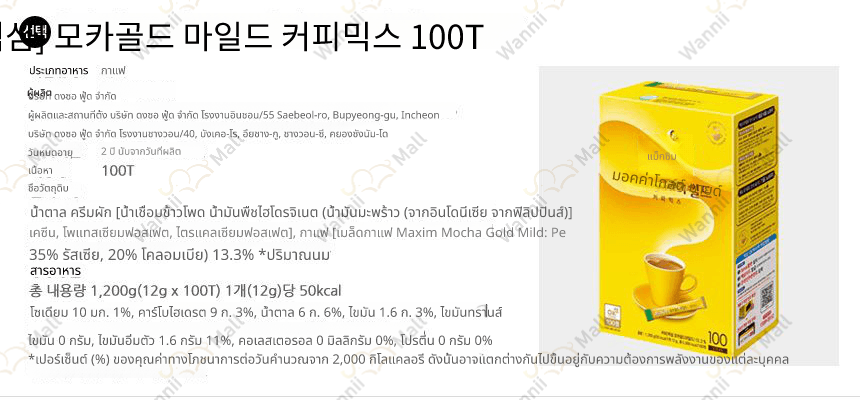 - โฮม > อาหาร > เครื่องดื่ม > กาแฟ/ชา > Maxim Mocha Gold Mild Coffee Mix 100 ซอง 1 กล่อง