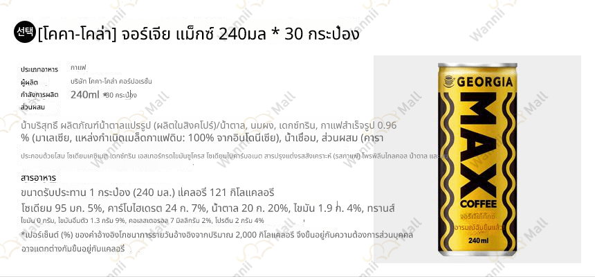 - โฮม > อาหาร > เครื่องดื่ม > กาแฟ/ชา > Georgia Max 240ml x 30 ชิ้น กาแฟกระป๋องแท้ กลิ่นกาแฟเข้มข้น