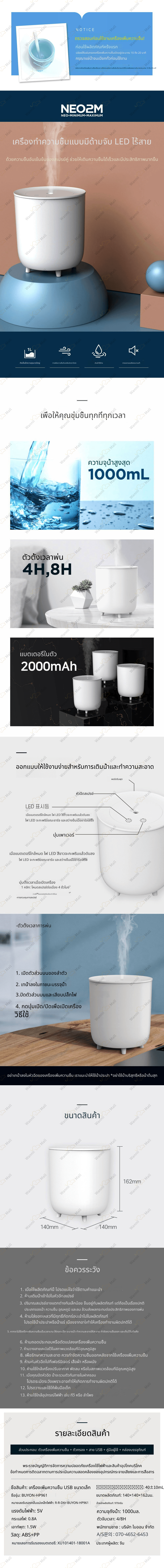 - โฮม > เครื่องใช้ไฟฟ้า/อิเล็กทรอนิกส์ > เครื่องใช้ไฟฟ้าภายในบ้านขนาดใหญ่ > เครื่องเพิ่มความชื้นในอากาศ > เครื่องเพิ่มความชื้นอัลตร้าโซนิกความจุใหญ่ ไร้เสียง สำหรับห้องนอน ออฟฟิศ โต๊ะทำงาน