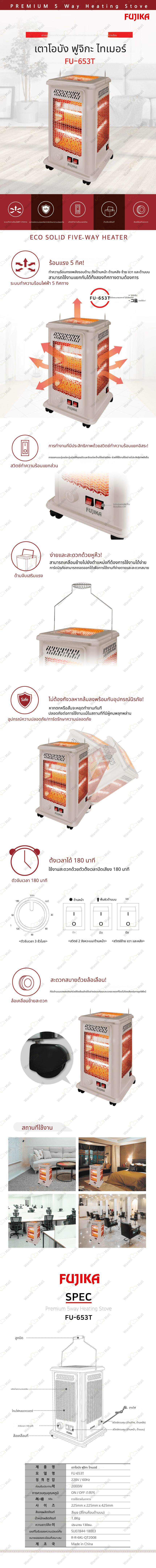 - โฮม > เครื่องใช้ไฟฟ้า/อิเล็กทรอนิกส์ > เครื่องใช้ไฟฟ้าภายในบ้านขนาดใหญ่ > เครื่องทำความร้อน 5 ทิศทาง Fujika แบบตั้งเวลา FU-653T