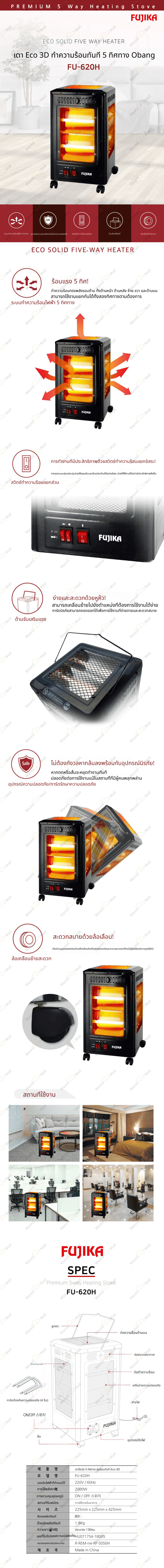 - โฮม > เครื่องใช้ไฟฟ้า/อิเล็กทรอนิกส์ > เครื่องใช้ไฟฟ้าภายในบ้านขนาดใหญ่ > เครื่องทำความร้อน 5 ทิศทาง Eco Fujika FU-620H สีดำ