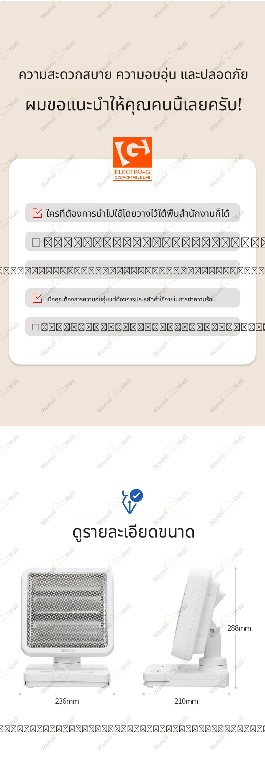 - โฮม > เครื่องใช้ไฟฟ้า/อิเล็กทรอนิกส์ > เครื่องใช้ไฟฟ้าภายในบ้านขนาดใหญ่ > เครื่องทำความร้อนมินิแบบหมุนได้ สำหรับเท้า สีขาว สวิตช์เท้า กำลังไฟต่ำ ความร้อนสูง พกพาง่าย ที่จับ หมุนซ้าย-ขวา ปรับมุมบน-ล่าง