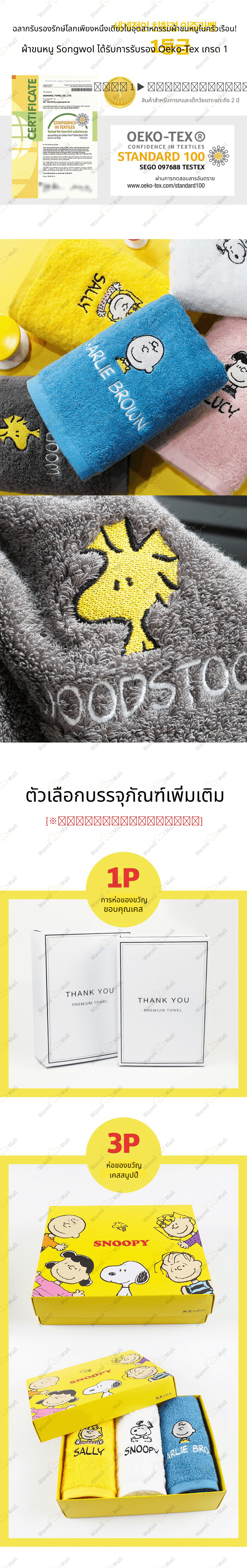 ผ้าเช็ดตัวโรงแรม Songwol Snoopy Peanuts 180 กรัม 1 ผืนพร้อมกล่องของขวัญ