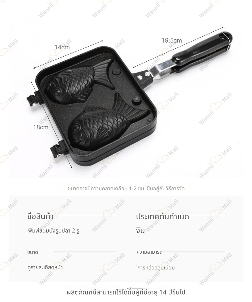 กระทะทำขนมปังปลา Taiyaki สำหรับใช้ในบ้าน 2 ช่อง