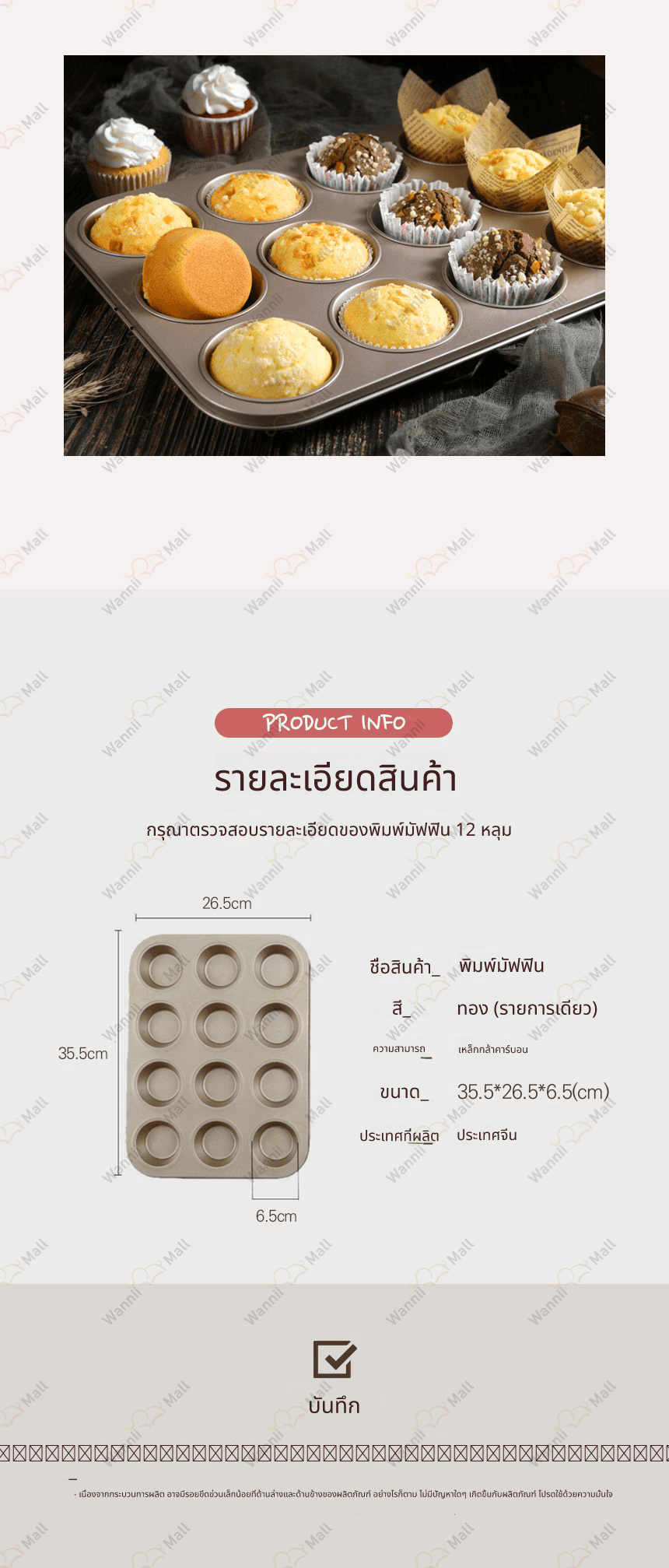 - โฮม > ของใช้ส่วนตัว > เครื่องครัว > อุปกรณ์ทำอาหาร/ทำเบเกอรี่ > แม่พิมพ์คัพเค้ก 12 ช่องสำหรับทำเบเกอรี
