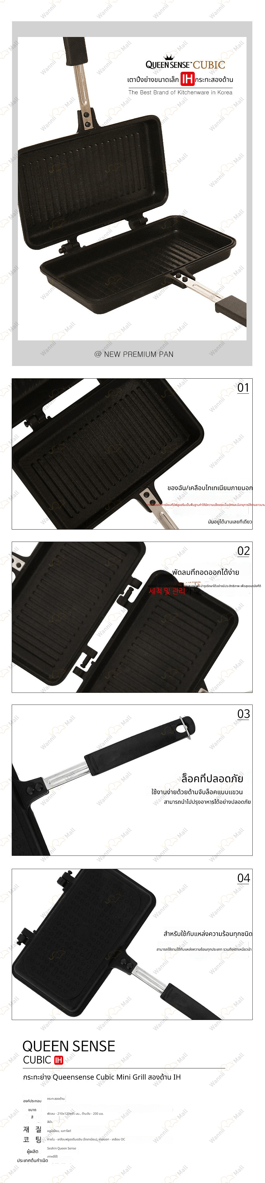- โฮม > ของใช้ส่วนตัว > เครื่องครัว > อุปกรณ์ทำอาหาร/ทำเบเกอรี่ > กระทะย่างสองด้านขนาดเล็ก Queensense 200 1 ชิ้น 210x120x45