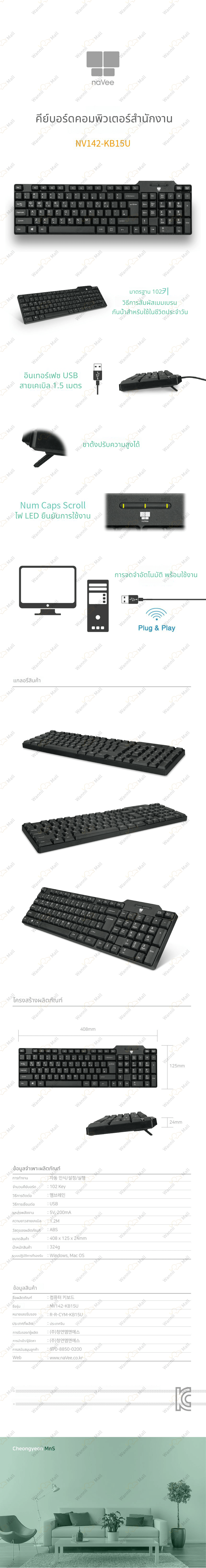 คีย์บอร์ดคอมพิวเตอร์มีสาย USB Nabee NV142-KB15U