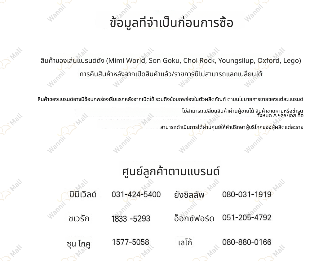 • หากคุณต้องการเปลี่ยนหรือคืนสินค้า กรุณายื่นคำขอภายใน 7 วัน หลังจากได้รับสินค้า โดยติดต่อศูนย์บริการลูกค้า Wannii Mall (together1@wannii.com หรือ 070-4256-8800)