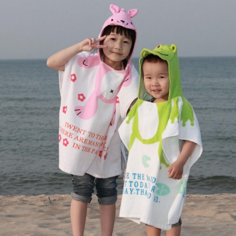ผ้าเช็ดตัวชายหาดแบบมีฮู้ดลายสัตว์สำหรับเด็กในฤดูร้อน ผ้าคลุมตัว ผ้าขนหนู