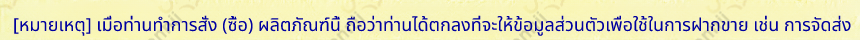 การซื้อผลิตภัณฑ์นี้ถือว่าคุณยินยอมให้บริษัทจัดส่งและบริษัทบุคคลที่สามใช้ข้อมูลส่วนบุคคลของคุณ (ชื่อ ที่อยู่ หมายเลขโทรศัพท์ ฯลฯ) ซึ่งจำเป็นต่อการจัดส่งที่ราบรื่น |