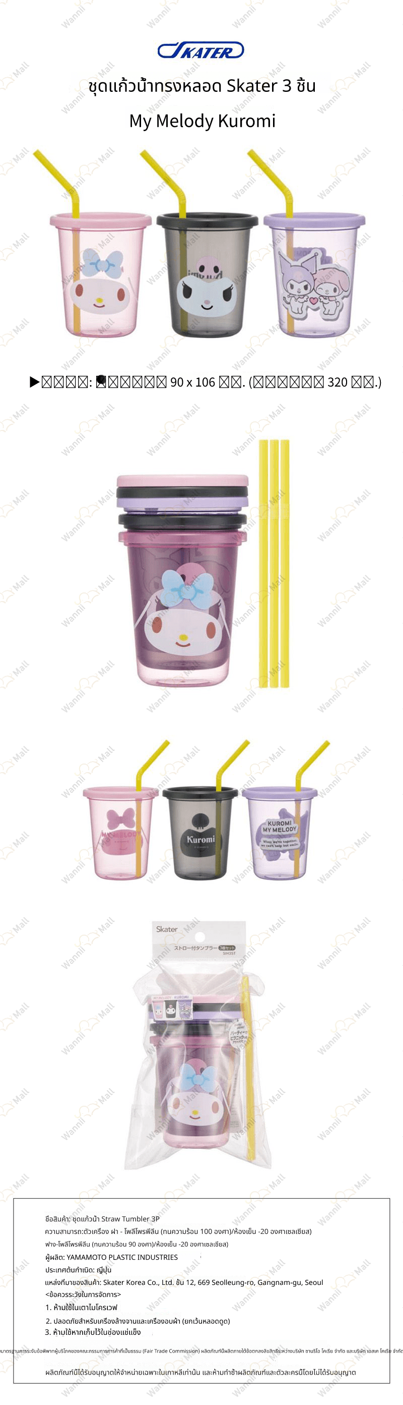 - โฮม > การคลอดบุตร/เด็กอ่อน > อุปกรณ์ดูแลเด็ก > อุปกรณ์สำหรับเด็ก/ชุดภาชนะบรรจุอาหารเด็ก > แก้วน้ำพร้อมหลอดลาย My Melody 320 มล. ชุด 1 แก้ว 3 หลอด
