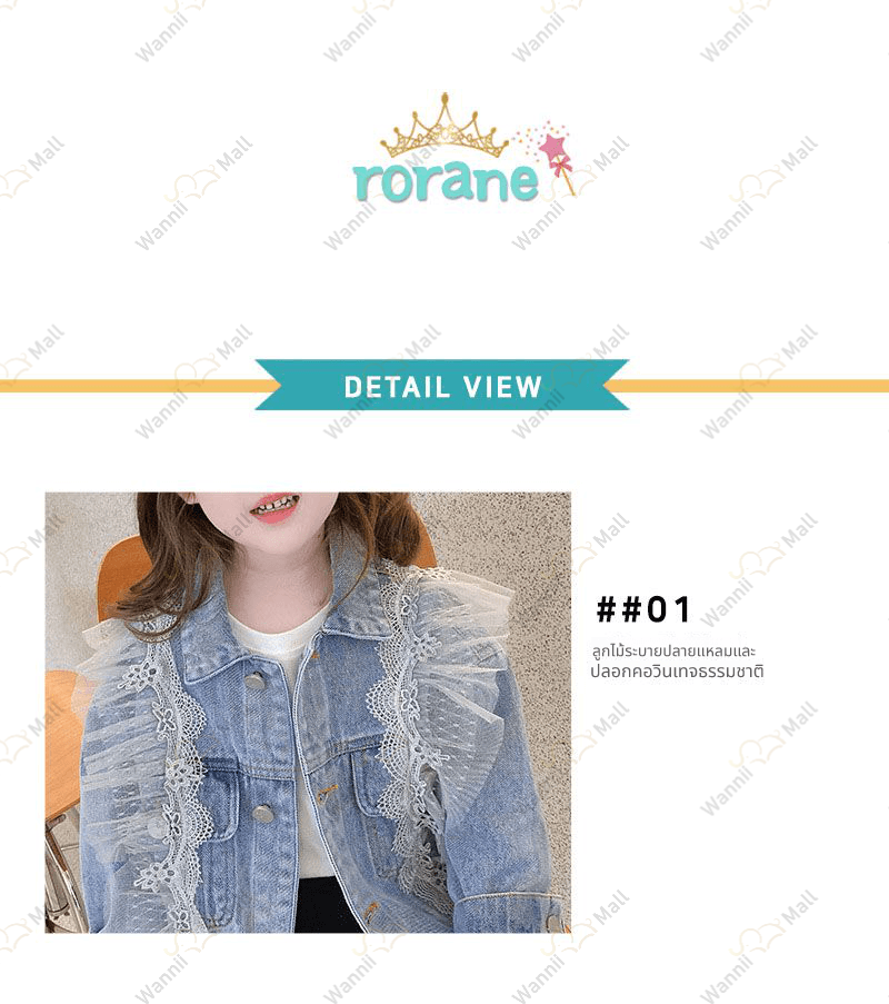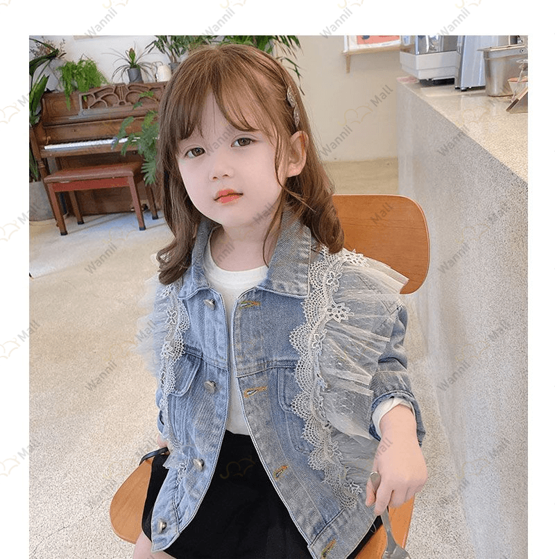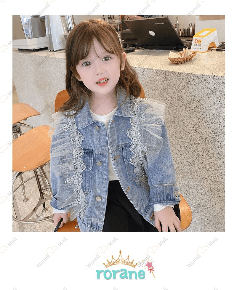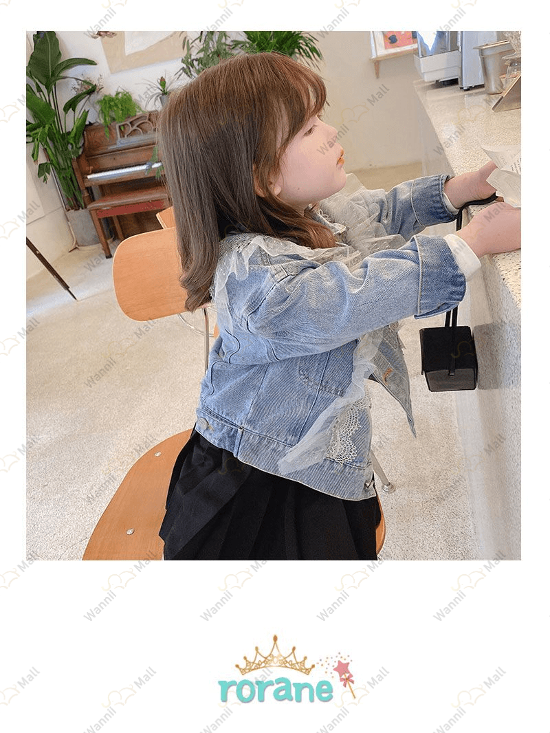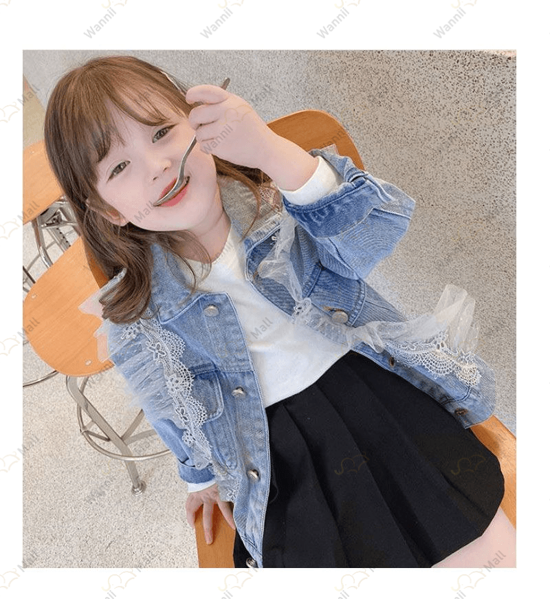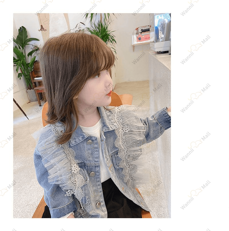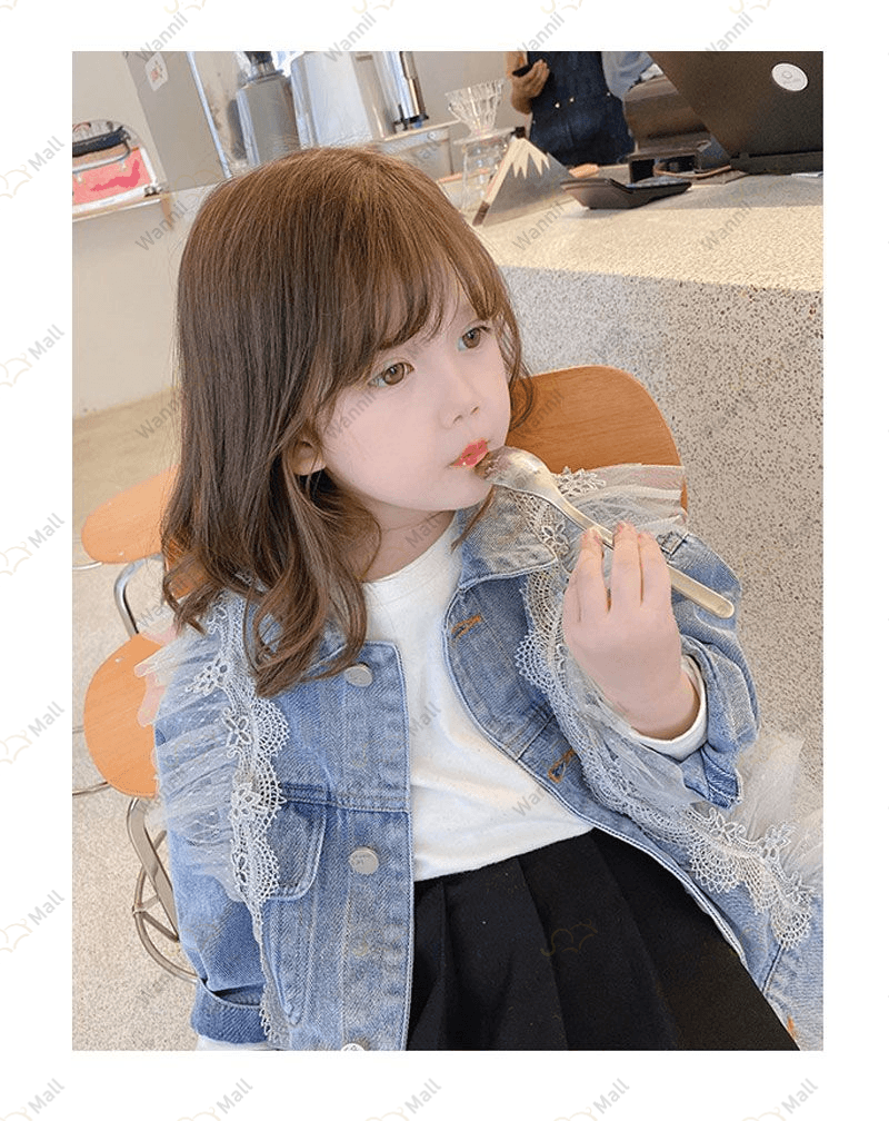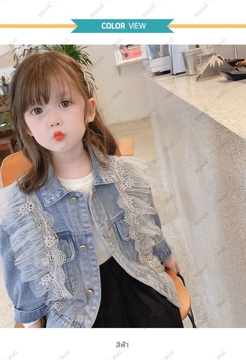 - โฮม > การคลอดบุตร/เด็กอ่อน > เสื้อผ้าเด็ก > เสื้อผ้าเด็กหญิง > เสื้อแจ็คเก็ตยีนส์ชีฟองลูกไม้ระบายสำหรับเด็กผู้หญิง
