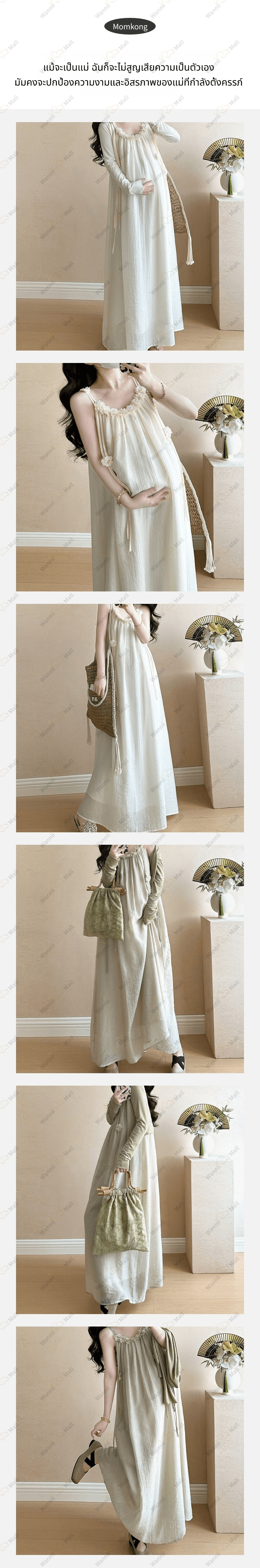 Momkong ชุดคลุมท้องแบบสายเดี่ยว ชุดเดรสคนท้อง ชุดเดรสสำหรับแม่ใกล้คลอด ชุดคนท้อง