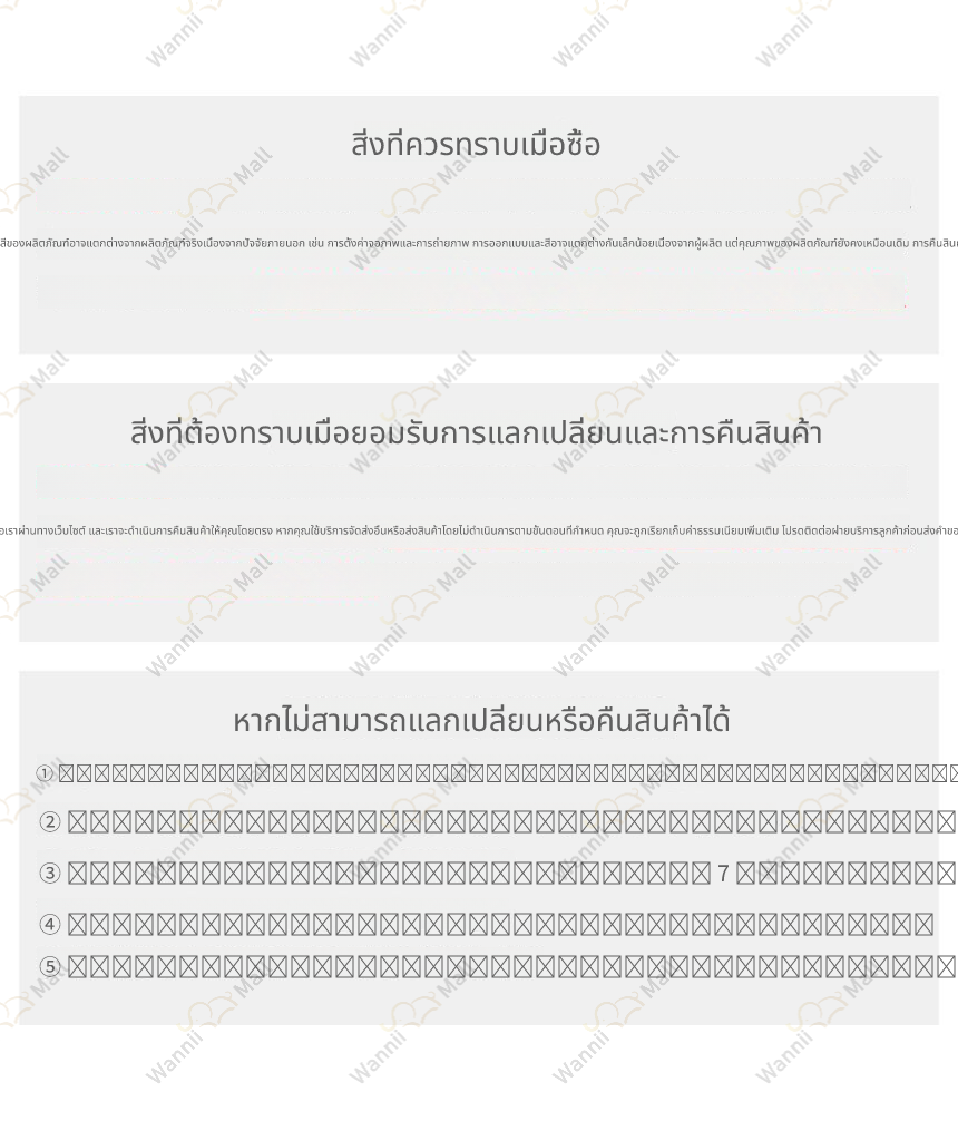นโยบายการเปลี่ยน/คืนสินค้า Wannii Mall