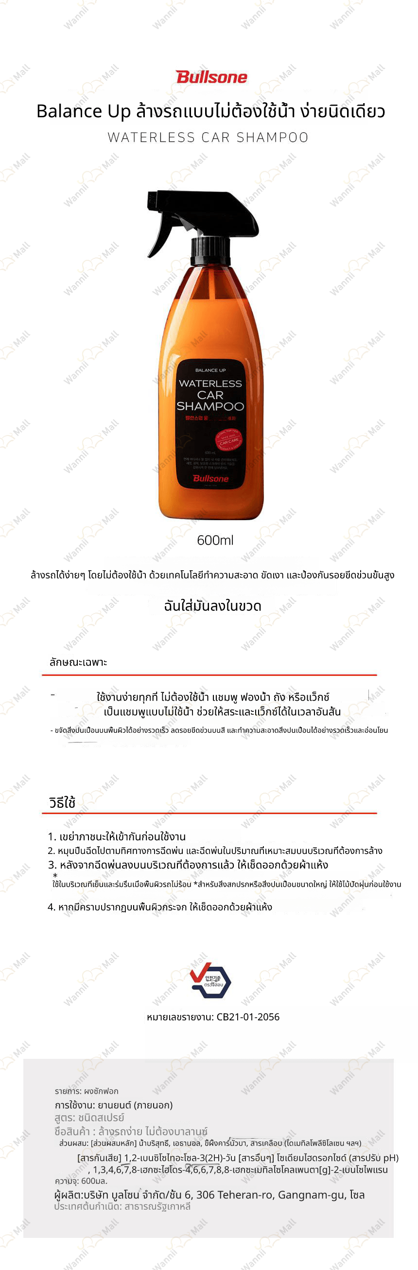 • หากคุณต้องการเปลี่ยนหรือคืนสินค้า กรุณายื่นคำขอภายใน 7 วัน หลังจากได้รับสินค้า โดยติดต่อศูนย์บริการลูกค้า Wannii Mall (together1@wannii.com หรือ 070-4256-8800)