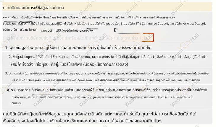 นโยบายการเปลี่ยน/คืนสินค้า Wannii Mall