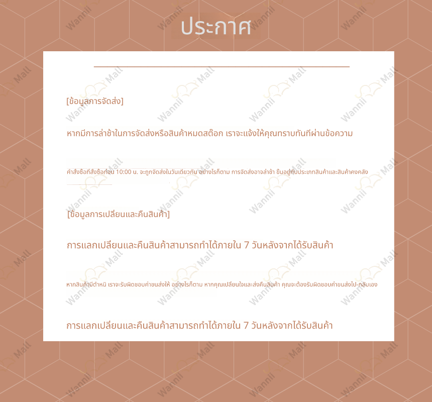 นโยบายการเปลี่ยน/คืนสินค้า Wannii Mall