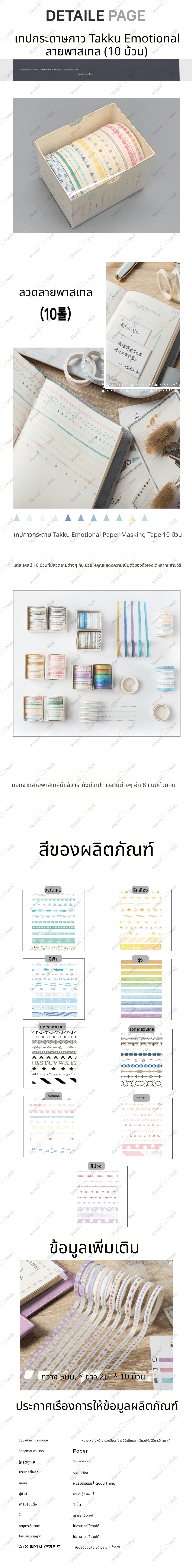 เทปมาสก์กิ้งอารมณ์สำหรับตกแต่งไดอารี่ ลายพาสเทล ชุด 10 ม้วน
