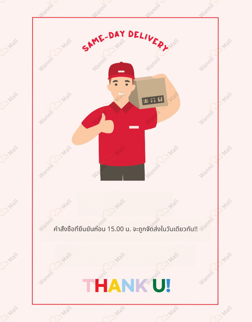 • กรณีเปลี่ยน/คืนเนื่องจากสินค้ามีตำหนิ หรือจัดส่งผิดพลาด ทาง Wannii Mall จะเป็นผู้รับผิดชอบค่าจัดส่ง