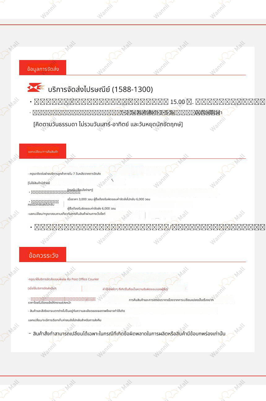 • กรณีที่สินค้ามีตำหนิ หรือจัดส่งผิดพลาด ทาง Wannii Mall จะเป็นผู้รับผิดชอบค่าจัดส่ง