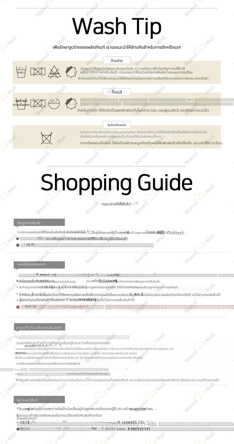 • หากคุณต้องการเปลี่ยนหรือคืนสินค้า กรุณายื่นคำขอภายใน 7 วัน หลังจากได้รับสินค้า โดยติดต่อศูนย์บริการลูกค้า Wannii Mall (together1@wannii.com หรือ 070-4256-8800)