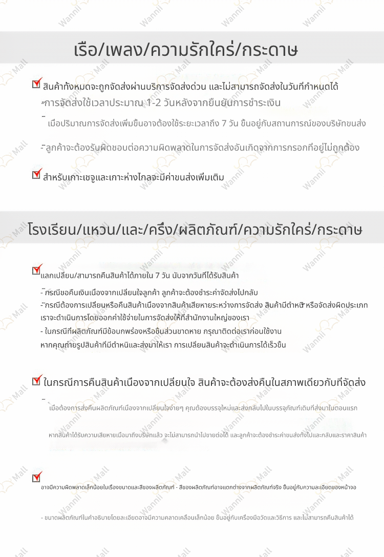 • สินค้าที่ถูกส่งคืนโดยไม่มีการแจ้งล่วงหน้า เราจะไม่รับผิดชอบ