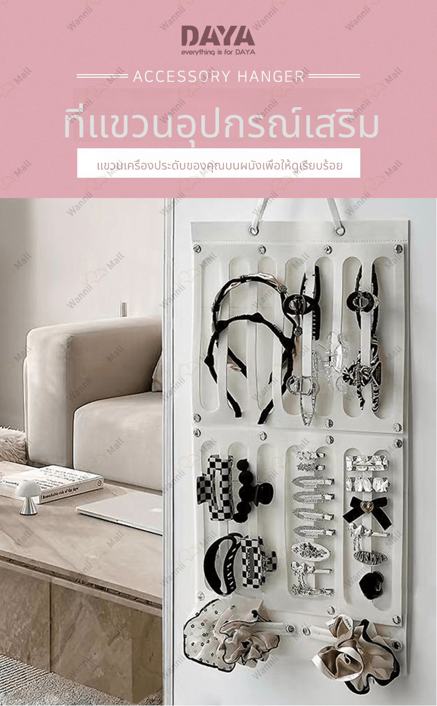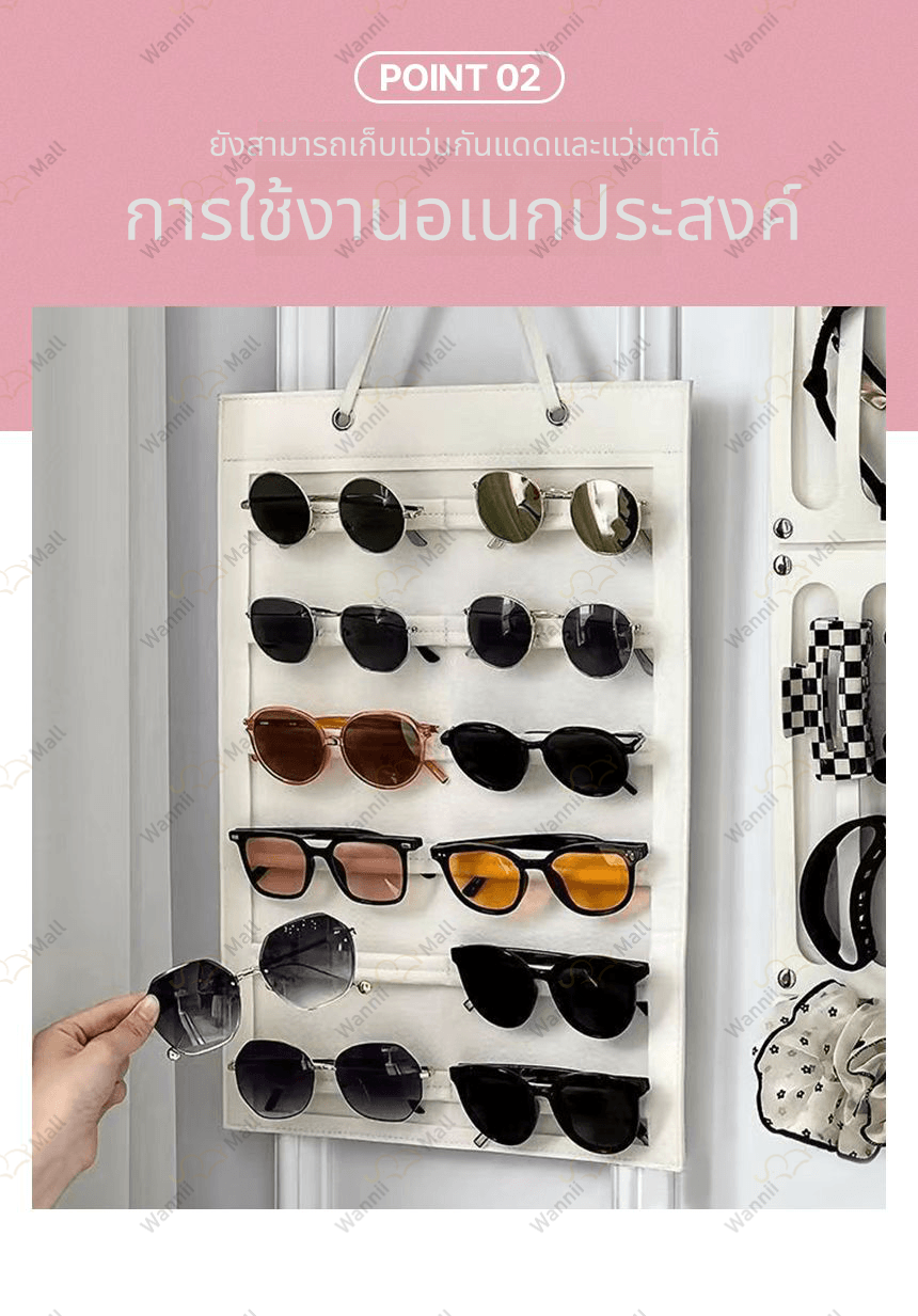 - โฮม > แฟชั่นและเครื่องประดับ > จิวเวลรี่/นาฬิกา/เครื่องประดับ > ที่จัดระเบียบเครื่องประดับแบบแขวนทำจากผ้าสักหลาด ที่เก็บกิ๊บติดผม ที่คาดผม แว่นกันแดด ใช้พื้นที่ว่างบนผนัง