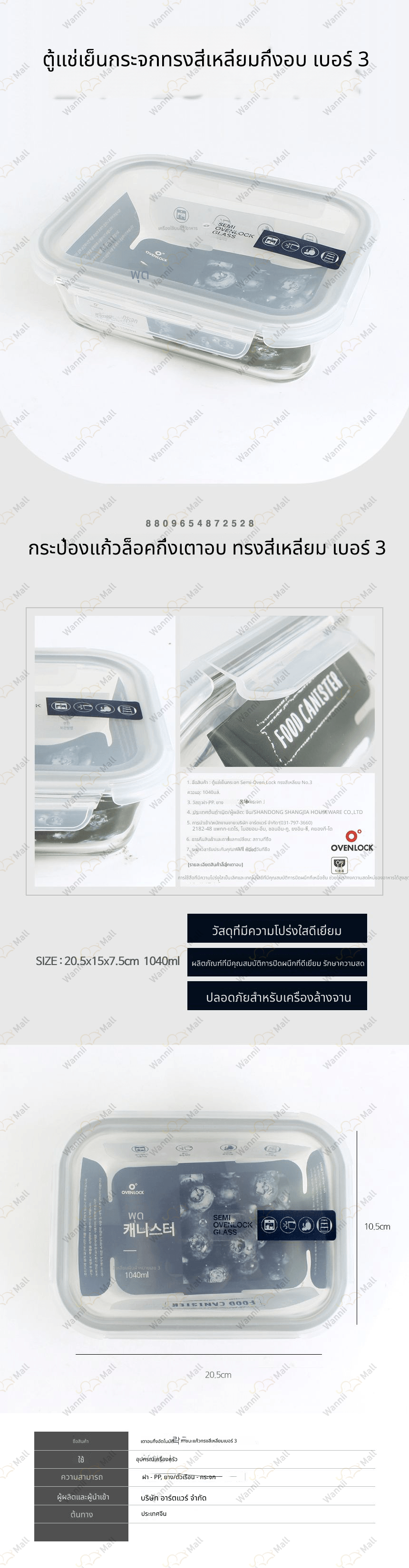- โฮม > ของใช้ส่วนตัว > เครื่องครัว > ภาชนะสุญญากาศ/จัดเก็บ > กล่องแก้ว Oven Lock Semi Magic Clean ทรงสี่เหลี่ยมผืนผ้าเบอร์ 3 1040 มล.