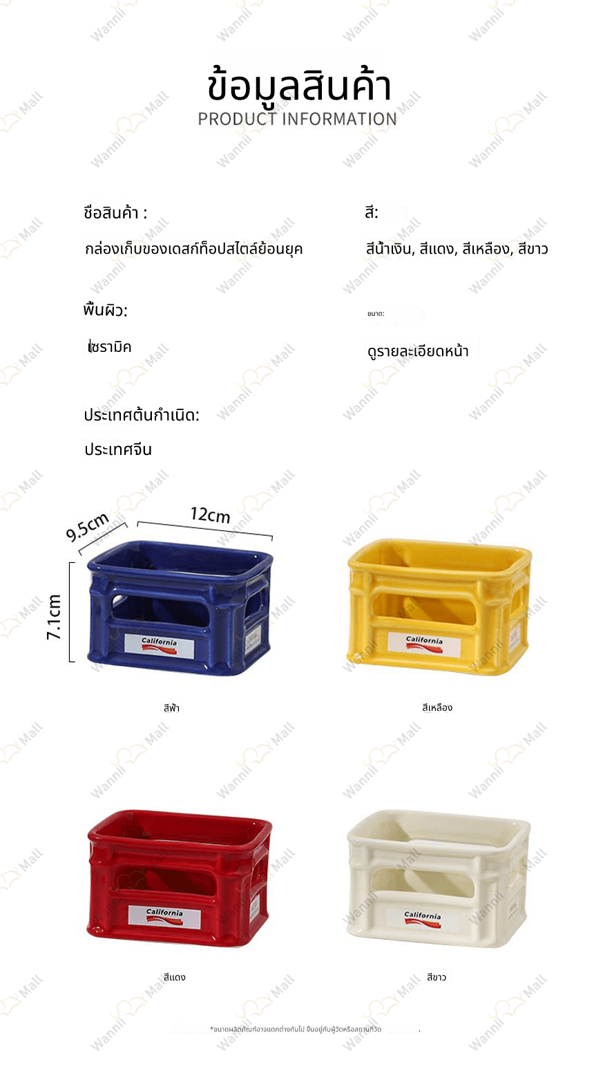 - โฮม > ของใช้ส่วนตัว > อุปกรณ์จัดเก็บ/จัดระเบียบ > ตะกร้าเก็บของ Retro สำหรับตกแต่งโต๊ะ