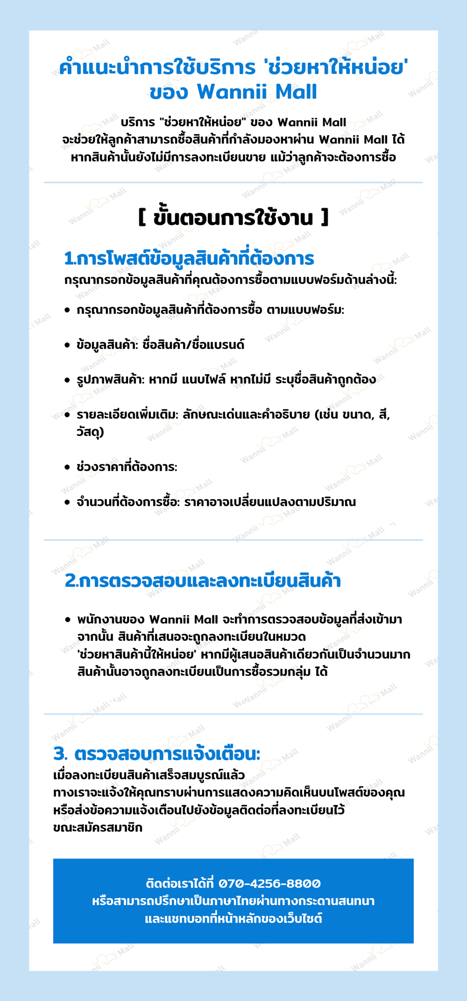 คำแนะนำการใช้บริการ 'ช่วยหาให้หน่อย' ของ Wannii Mall
