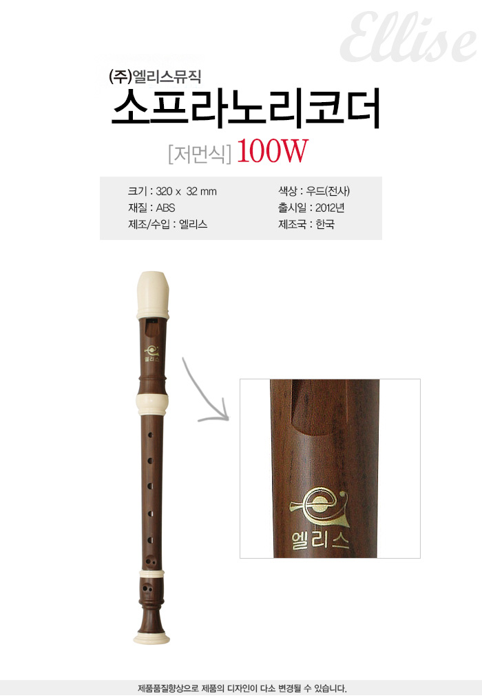 본 제품을 구매하시면 원활한 배송을 위해 꼭 필요한 고객님의 개인정보를 (성함, 주소, 전화번호 등) 택배사 및 제 3업체에서 이용하는 것에 동의하시는 것으로 간주됩니다. 엘리스뮤직 소프라노리코더 저먼식100W G |