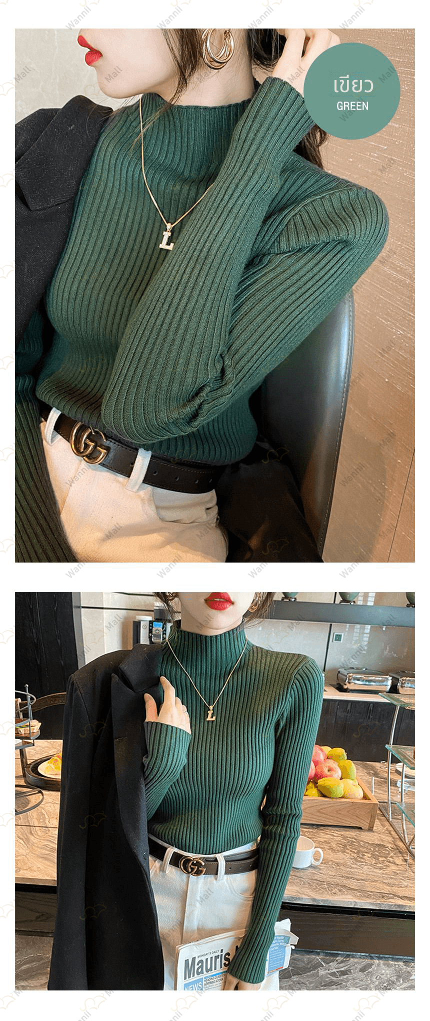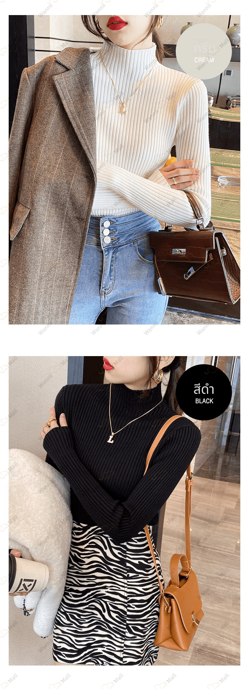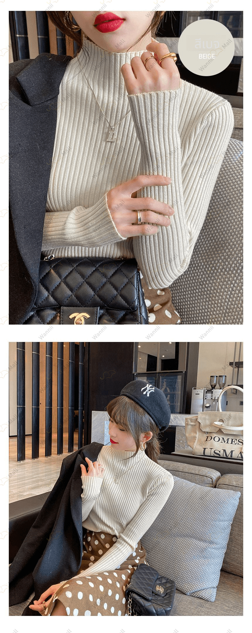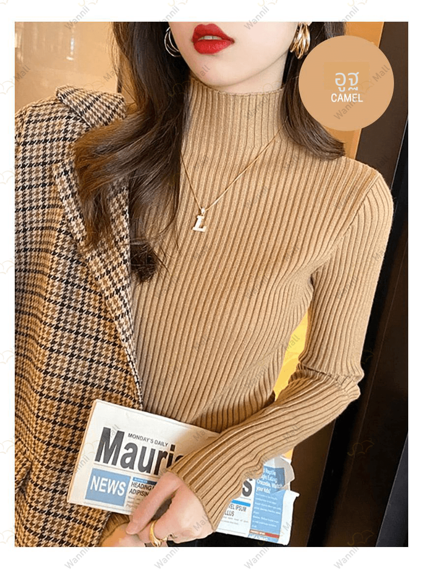 โฮม > Only Wannii > รวมกลุ่มซื้อ > [1+1] เสื้อไหมพรมผู้หญิง แขนยาว คอเต่า/คอตั้ง ริบ (Ribbed Knit Turtleneck) (สินค้าพร้อมส่ง)