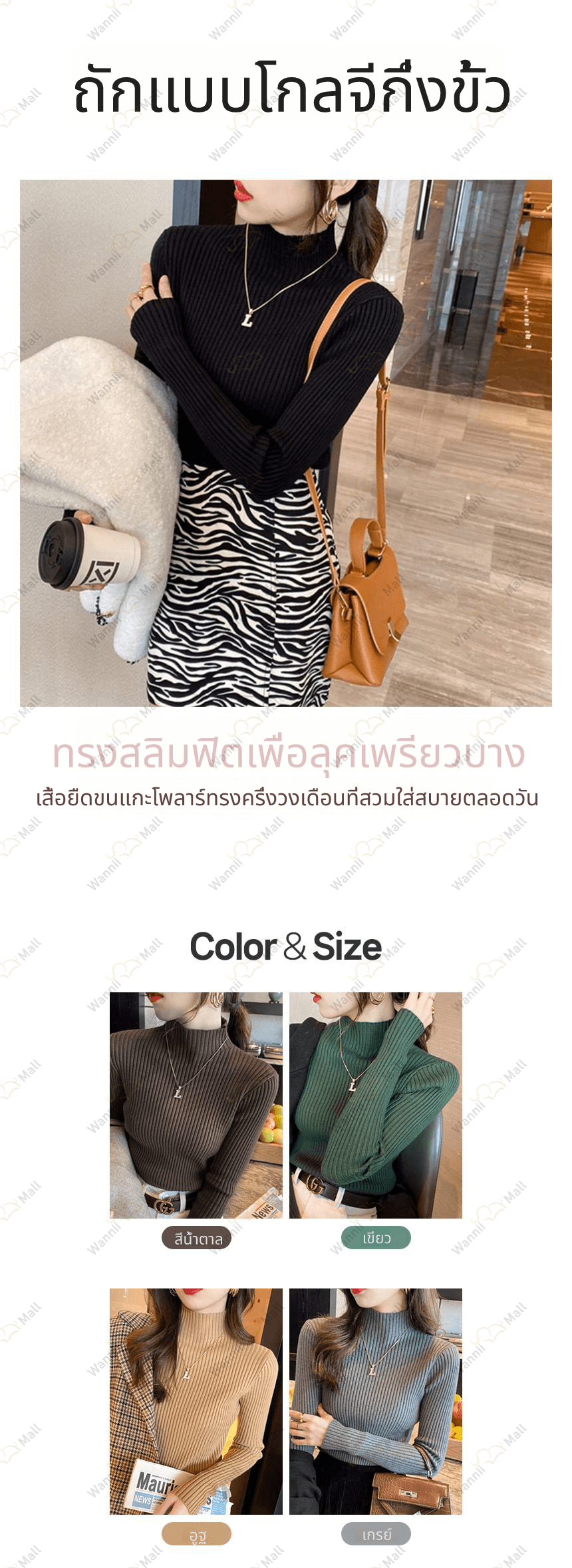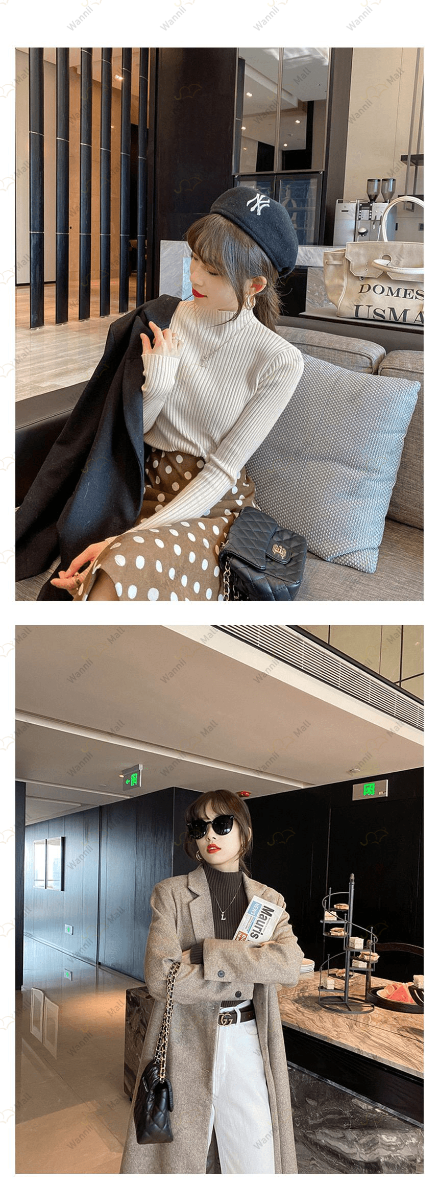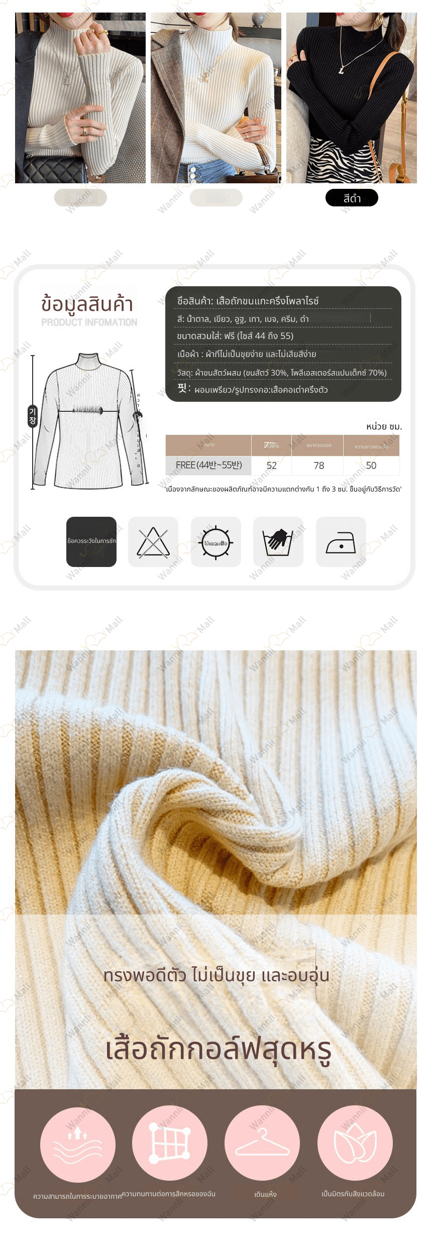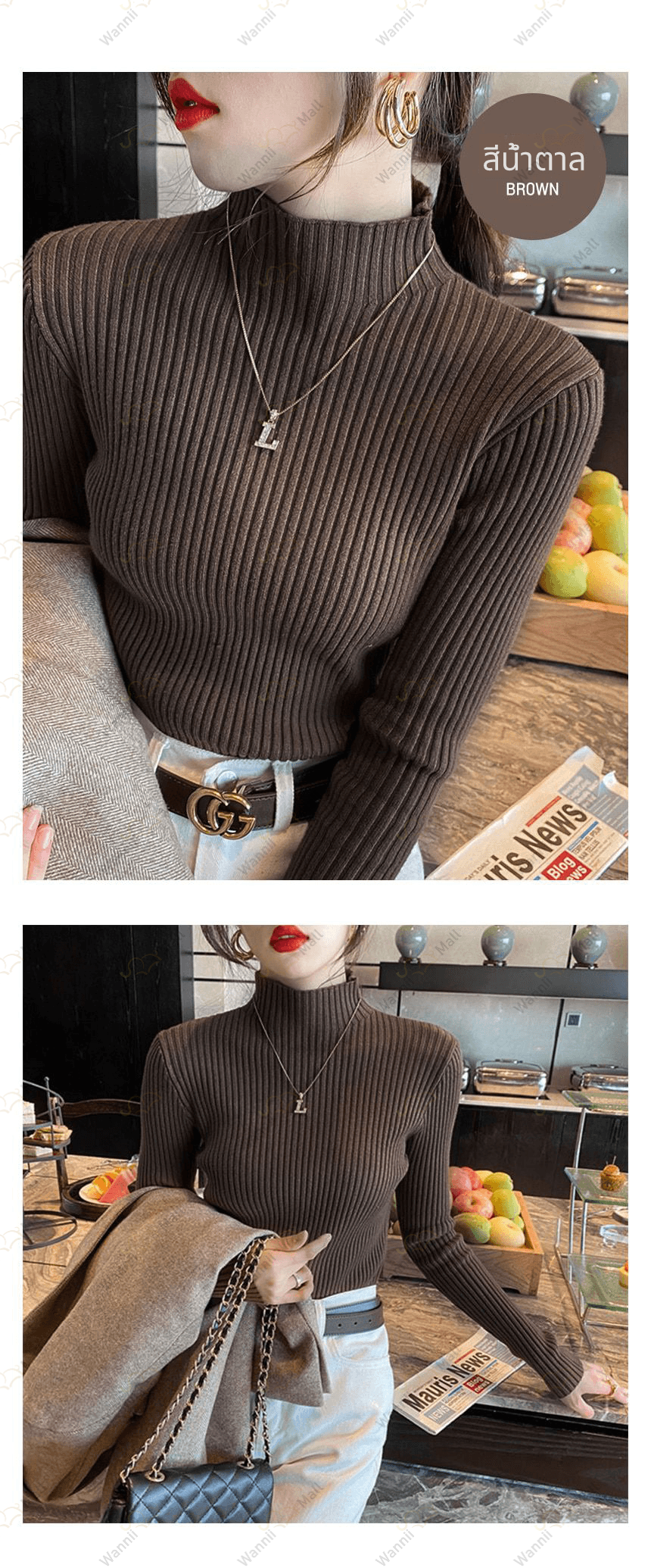 โฮม > Only Wannii > รวมกลุ่มซื้อ > [1+1] เสื้อไหมพรมผู้หญิง แขนยาว คอเต่า/คอตั้ง ริบ (Ribbed Knit Turtleneck) (สินค้าพร้อมส่ง)
