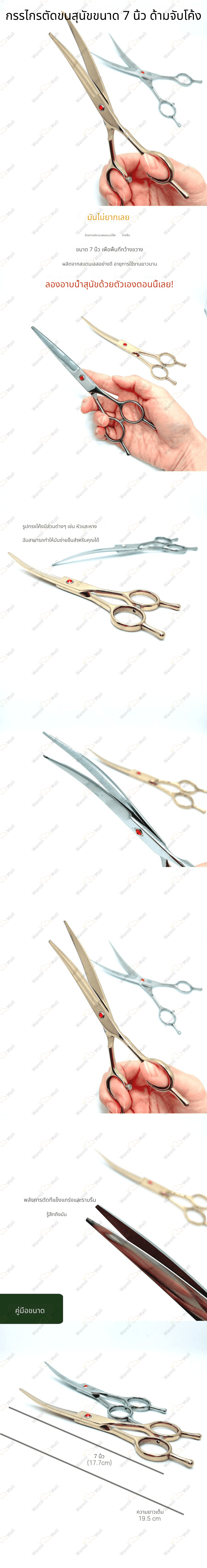 กรรไกรตัดผมสแตนเลส 7 นิ้ว ทรงโค้ง 2 สี